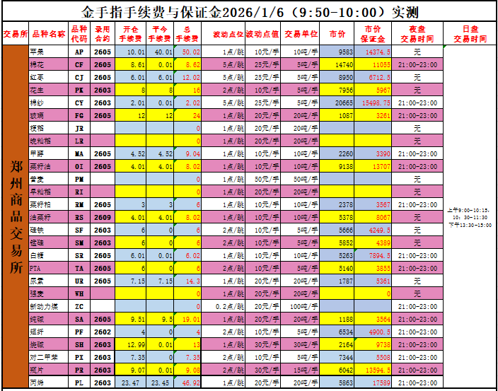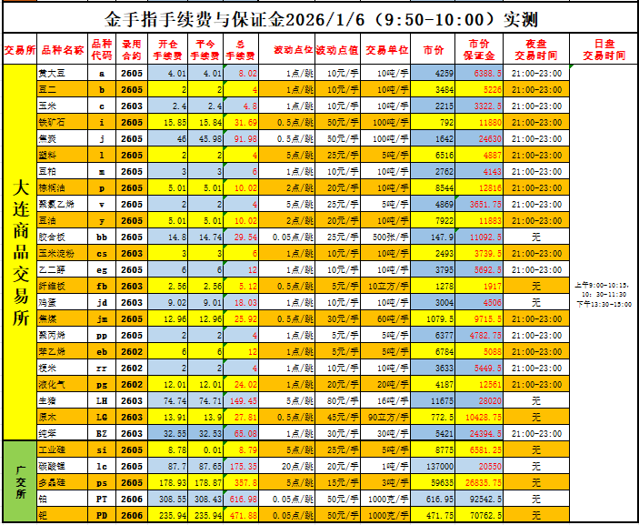 手续费与保证金会随商品价格的波动,交易所的手续费调整而变动